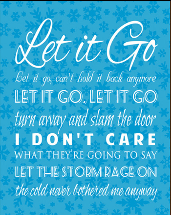 In my mind, I placed “Let It Go” at the end of the movie as a ‘goodwill and strength defeats evil’ – type sing along; it is a stunning song with great lyrical sub-text about resilience.