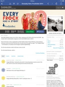 Last year, I raised just over $2,700 for the OCRF. This year I was full of vigour that I would get to $3,000 easily. At the end of day 1 last year I had over $300, it’s day 2 – around lunchtime and I haven’t yet achieved $100.